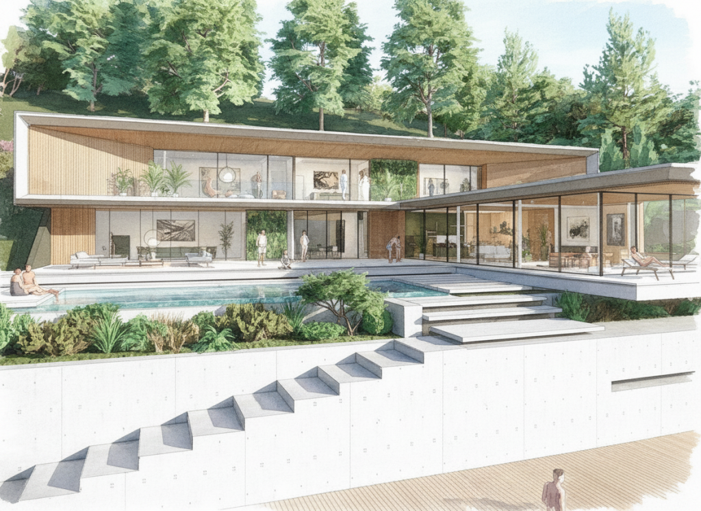 Lewis Critchley Architects have designed a contemporary new-build house in Gloucestershire, sitting within a sensitive context and designed to provide a quiet home in the country. Nestled amidst a serene, lush landscape, this contemporary residence is a testament to sleek design and functional living. Its clean lines and minimalist aesthetic blend seamlessly with the surrounding natural beauty.